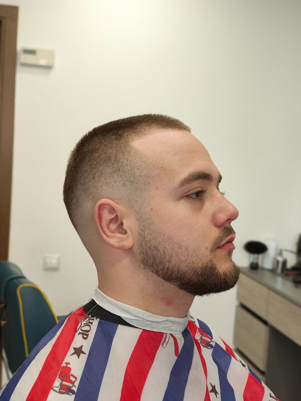 Look complet, cu bărbierit tradițional la brici pentru un plus de eleganță.