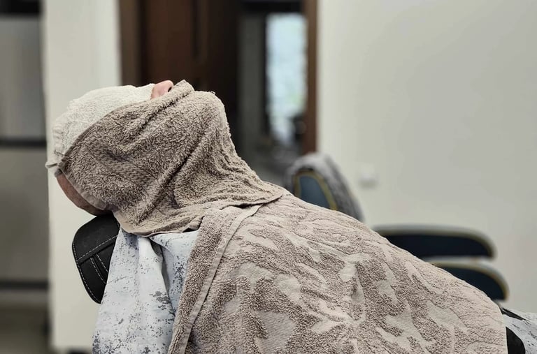 Relaxare totală și bărbierit clasic cu prosoape calde.
